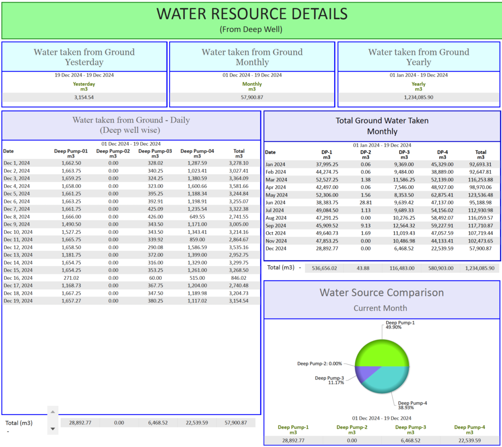 WMS Water management System. Water Balancing Resource, Section wise, Equipment wise, Analytics Conservation of Energy Ranking Component